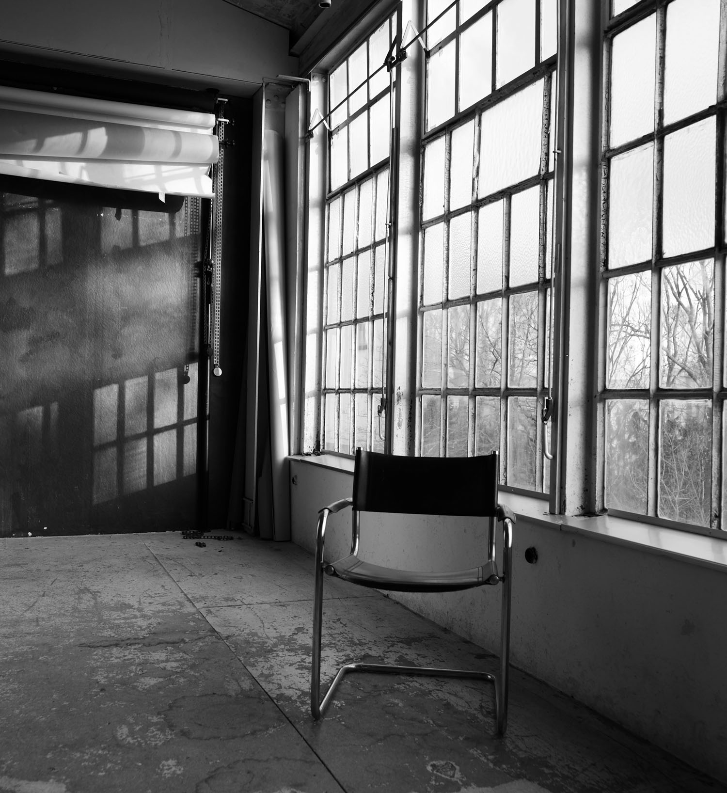 Matthias hatte uns einen Gasheizer und einen Bauhaus-Sessel in das Studio gestellt.